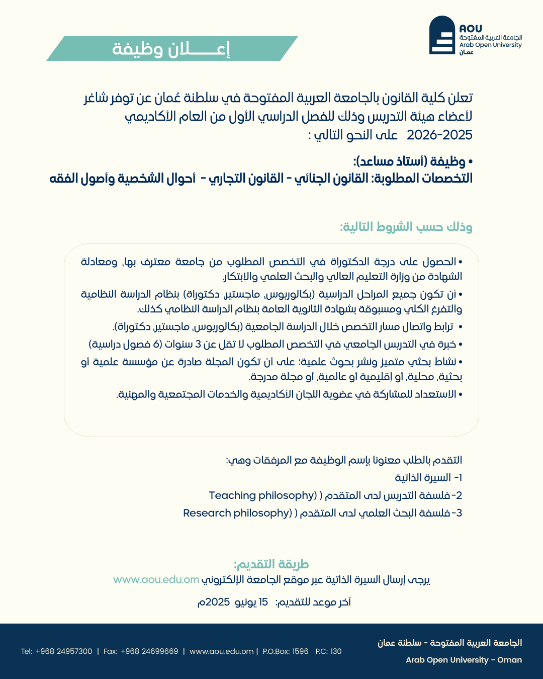 © الجامعة العربية المفتوحة - عُمان 2021 جميع الحقوق محفوظة.